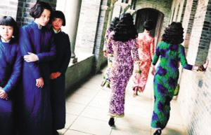 本报综合消息 张艺谋新片《金陵十三钗》将于年底圣诞节档上映,目前就差音乐和特效的合成了,昨天制片方首次曝光了该片的剧照。但一如既往,曝光剧照仍然延续着“保密”原则,几位主演都是以背影示人,《金陵十三钗》仍然笼罩着神秘光环。唯一可以确定的是,制片人张伟平已经把“十三钗”中的“六钗”签入新画面影业。他表示,国际上的大品牌已经开始对“十三钗”明争暗夺,开创了中国电影“未见人,先见钱”的先河。