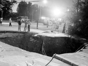 今年6月9日16时许,大连地铁山东路施工现场附近路面坍塌,出现直径超过5米的深坑,部分地下管线断裂。