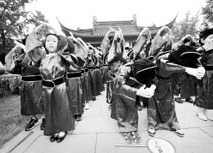 8月31日,南京夫子庙小学的300多名一年级新生来到夫子庙“开笔破蒙”,孩子们通过诵读《论语》、学写“人”字、祭拜孔子、朱砂开智、撞启蒙钟、观大成殿、聆听师长寄语等仪式,在传统文化的浸润中正式入学,数百名家长前来观礼。图为新生们向孔子像行礼。 新华社发