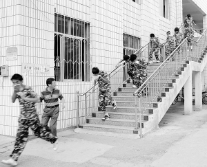 9月2日,消防官兵在鹿邑县某高中进行一场消防安全演练。当日上午9时许,伴随着一阵消防警报响起,数百名刚刚跨入高中校门的学生在教师的引导下,按照逃生要求有序撤离,消防官兵迅速到达指定位置,立即投入“战斗”。图为同学们在老师的带领下有序撤离。