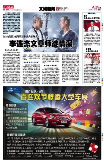 由中国巨力影视投巨资打造的李连杰版东方神话魔幻巨制《白蛇传说》,在威尼斯电影节首映引起轰动。但据片方介绍,威尼斯首映版本相对亚洲版减少了近30分钟。日前,片方曝光了一批剧照,首次揭秘了片中的新角色——由文章饰演的法海弟子能忍与由李连杰饰演的法海之间的师徒情,其中包含了在威尼斯电影节播放版本的删减内容。之前二人在电影《海洋天堂》中的父子情深催人落泪,再度携手二人则演绎了一段深厚的师徒情。