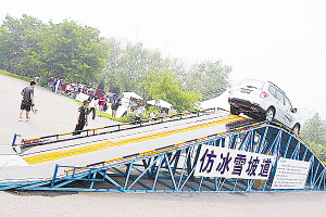 作为一款城市运动越野车,斯巴鲁森林人在雪地中的表现是大家所期待的,在模拟雪地地形中,工作人员在30度角的斜坡上均匀倾洒润滑液,用来模拟雪地的路况,在爬坡的时候轮胎一点打滑的情况都没出现,优异的表现赢得了观众的阵阵喝彩。