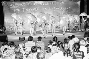 近日,由甘肃省委宣传部组织的“红歌传遍神州地,红军精神代代传”全国巡演活动河南首场演出在鹿邑隆重举行。甘肃红色歌舞团表演了大型舞蹈、大合唱、情景剧等16个脍炙人口的红色经典节目。在两个多小时的演出中,4000多名观众激情澎湃,与演员们一起大声齐唱一首首红色歌曲。图为演出现场。晚报记者 侯国防 摄 线索提供 陈海棠 闫子健
