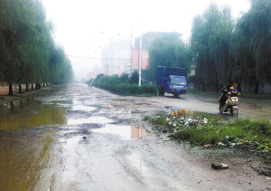 昨日,行走在周口市区银珠大道上的市民和车辆在小心翼翼地绕行。连续几天的降雨使本来就坑洼不平的银珠路变成了积水重地,给附近居民和在该路段上学的学生带来极大不便,希望相关部门予以重视,早日整修。