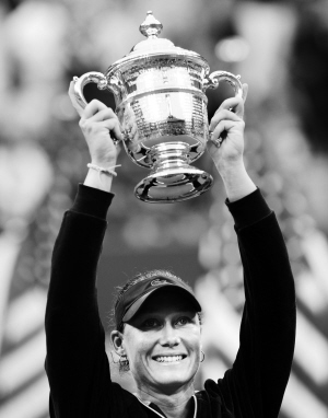 这个判罚显然影响了小威的情绪,在随后的比赛中,她越来越激动,而对手斯托瑟则十分冷静。随着斯托瑟一个大角度的反斜线得分,2011年美网女单冠军就此产生。