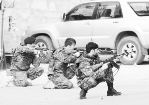 一名西方官员证实,驻阿国际安全援助部队总部是袭击目标之一,“此刻,总部遭袭击”。