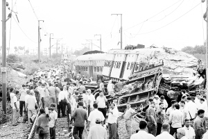 9月14日,在距离印度南部港口城市金奈约80公里处的阿尔科南,人们围聚在车祸事故现场。13日晚,一辆列车在距南部港口城市金奈约80公里处撞上了另一辆停在铁轨上的列车,目前已造成9人死亡,100多人受伤。