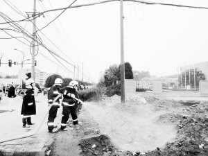 消防官兵在紧急处置事故的同时,天然气公司的抢修人员也及时赶到现场,并对管道采取了关阀措施。经过消防官兵10分钟的奋力扑救,空气中弥漫的天然气基本被稀释。
