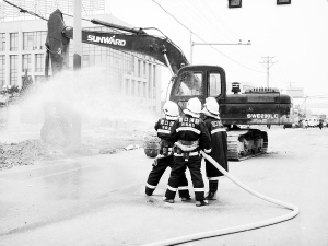 本报讯 9月13日下午,项城市闹市区一工地旁,一辆挖掘机因施工不当挖断天然气管道,造成天然气大量泄漏。事情发生后,周围聚集很多围观群众,一旦发生爆炸,后果不堪设想。所幸项城消防官兵及时赶到,仅用10分钟就排除了险情。