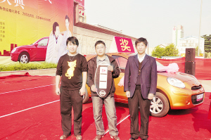 只见他捋起袖子,背对抽奖箱,用手在箱中搅动了一番后,缓缓抽出一张奖券,填写这张奖券的市民将成为轿车大奖的获得者。主持人小心翼翼接过奖券,大声念出获奖者的名字,然后将奖券交给主办方工作人员,根据上面填写的电话与中奖者联系。