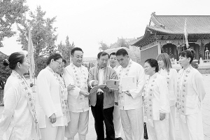 近日,4位韩国知名人士与吉林、深圳等地的几名民营企业家在鹿邑明道宫景区聆听老学专家讲解老子文化。