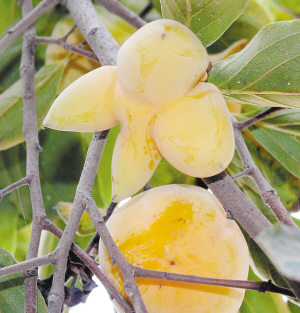 昨日上午,记者在郸城县人民路南段原烟厂家属院李德俊家的小院里看到,两棵柿树挂满了柿子,晶莹剔透、甚是诱人。然而,其中一棵柿树上结的果实很是罕见,有的像小兔子翘起两只耳朵,有的像小猴子卧在蟠桃上,有的像小孩子在玩耍,有的像海龟在游泳,有的像小燕子在飞翔(如小图)……记者仔细数数,这棵树结了约300个果实,其中有80多个是这类“变形”果。