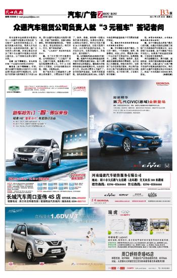 众通汽车租赁公司负责人就“3元租车”答记者问