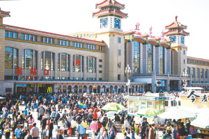 此外,自驾车旅游运输量将继续增长。(图:9月30日,北京火车站广场人流如织。新华社)