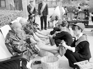 为老人洗脚理发