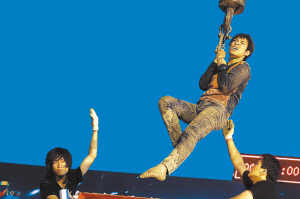10月1日,在上海欢乐谷国际魔术节上,台湾魔术师艾革用3.6吨沙土把自己“活埋”在一个巨大的透明箱中。直至6日出箱,他在箱中呆了120小时,其间只能以一条细管呼吸及摄取水分。据工作人员介绍,此项表演中,艾革身上的配件只有3样,除了护目镜与细管,还有一台生命监控器,24小时不间断监测。