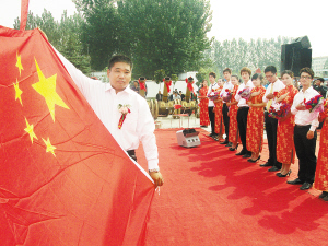为庆祝国庆,10月1日,商水县在该县阳城公园举办了一场别开生面的集体婚礼。婚礼仪式过后,新人们面对国旗集体宣誓:热爱祖国、热爱生活、努力工作、报效祖国,并推着插有国旗的山地车游行,以此表达对伟大祖国的热爱和祝福。