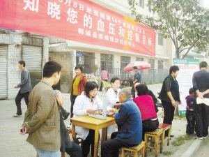当日上午,记者在现场看到,医生边免费为市民测量血压,边详细讲解造成高血压的原因和如何控制等保健知识。“血压这么高?以后一定按时吃药……”刘女士刚量完血压,高压160,低压105。得知如长期不治疗会对身体造成很大伤害时,她后悔地说,平常血压就有点高,觉得没啥不舒服,也不影响工作和生活,就没吃过降压药,没想到血压现在这么高。