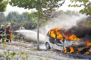 昨天下午,市区周口大道旁,一辆“哈飞路宝”汽车不知为何突然起火。消防官兵闻讯赶来扑灭了大火,但轿车已变成了一堆废铁,所幸无人员伤亡。据车主介绍,他们也不知怎么回事,车子就着火了。目前,起火原因警方已介入调查。
