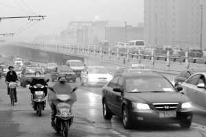10月10日,车辆和行人经过高阳桥的引桥。