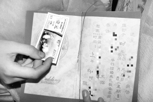 昨日上午,章女士说,虽然她收过不少喜帖,但还是第一次收到附有公交车票的喜帖。记者打开这张喜帖,发现粉红色的内页上除了写清楚婚宴地点、时间等内容外,还赫然用订书针固定了两张公交车票,与内页上的婚礼地点相映成趣。