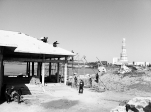 在周口公园建设施工现场,推土机、挖土机等大型机械紧张作业,百余名工人正在有条不紊地施工。据了解,周口公园建设总投资1.4亿元,以水上公园建设为主体,以城市公共绿地为主要内容,建成后将成为集科普教育、军事博览、爱国主义教育及休闲康体和园艺观赏等功能为一体的绿色生态性综合公园。晚报记者 金月全 摄