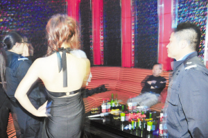 4天来(10月13日开始),周口市公安局七一路派出所治安服务大队在辖区开展了集中治安大检查行动,突击检查了辖区娱乐场所、宾(旅)馆、洗浴服务场所等,查获涉案人员20余名,抓获涉嫌吸毒人员1名,治安处罚涉嫌容留陪侍女子从事营利性陪侍行为的娱乐场所12家。图为民警在市区文明路一娱乐城查获陪侍女子。