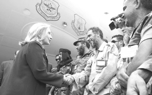 不过,希拉里捎去的4000万美元援助并非用于人道主义项目,美国要求过渡委专款专用,把这笔钱用于肃清全国泛滥的小武器。