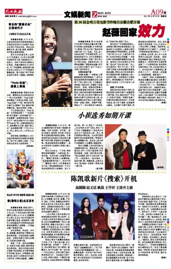 本报综合消息 10月18日,陈凯歌导演的新片《搜索》在宁波开机,由高圆圆、赵又廷、姚晨、王学圻、陈红、王珞丹、陈燃组成的演员阵容也首次在开机发布会上集结亮相。《搜索》内容涉及网上“人肉搜索”的话题,也是近年来陈凯歌首次拍摄现实题材片。