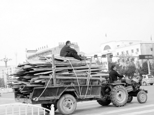昨日上午,记者在太康县谢安路与银城路交叉口附近看到,一辆拖拉机载着满满一车木材在路上行驶,而令人震惊的是,木材上面竟然还坐着一位老人,十分危险,让旁边的路人都为他捏了一把冷汗。一旦车辆遇到突发情况急转弯或者急刹车,很容易把老人甩落到地上,造成事故伤害。