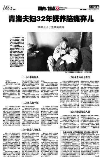 青海夫妇32年抚养脑瘫弃儿