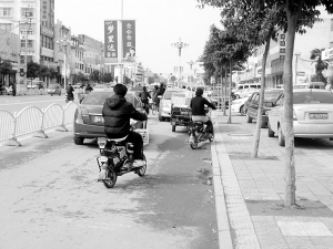 10月24日上午,由于太康县城谢安路的慢车道上停了多辆机动车,导致过往的行人和自行车只能缓慢穿行,交通非常混乱。“这些车把路都堵了,每次走在这里都要从机动车道上绕行,很不安全!”附近居民说。
