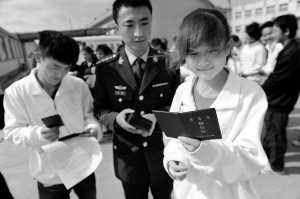 图为10月24日,青岛启龙制衣厂员工在现场办理暂住证。