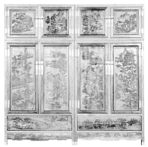 线条简洁的桌椅是明式的典型造型,呼应着墙面充满禅意的清淡的出水荷花图,但这份清淡素雅并不影响繁复雕刻的华丽表演。空间靠墙的多宝格用那些完美的雕刻聚焦了各路的视线。可以置放盆景、瓶钵,可以展示工艺品、收藏品,甚至还可以为四季的瓜果留出一方空间,让果香萦绕。