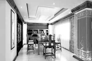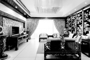 与之相呼应的,必然是寓意福寿吉祥的中式红木,唯有这些典雅厚重的家具才能使整个客厅变得稳重而极有韵味。而这些双夔龙、蝙蝠和团寿纹等蕴含古老传统美感的纹样,也必定是通过雕刻才能展现得淋漓尽致。