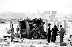北大西洋公约组织驻阿富汗国际安全援助部队一支车队29日在喀布尔西南达鲁拉曼宫附近遭遇汽车炸弹袭击。美联社报道说,这支北约车队当天行进在通往达鲁拉曼宫的一条四车道主干道上,搭载美军士兵的装甲运输车“犀牛”被夹在其他军车之间。自杀式袭击者在车队驶近一所大学正门时靠近,引爆所驾丰田车。现场腾起一团火球,黑烟滚滚,街道散落扭曲的汽车残骸和金属碎片。