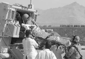 两架北约直升机随后赶往现场,接走部分伤亡人员。事发地不远处,另一些伤者在担架上接受紧急处理。北约方面说,13名外国士兵在爆炸中丧生。按阿富汗内政部的说法,爆炸还致3名阿富汗平民和1名警察死亡。遇难外国士兵国籍29日晚些时候得到证实。美国国防部发言人吉姆·格雷戈里说,他们全部是美国人。