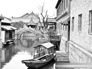 疏狂的书生有着文人“香草美人”的情结,希望着美丽的艳遇,走过夜的眼——七十二座桥,吻着夜的精灵湲湲的流水,走向不远处涌动着的青黑布练,一如风雨骄纵大泽,水意沛然风骨犹劲,再也走不出,不知何处是故乡;所到之处皆水乡——况且还没有梅子熟时日日蝉燥的溽热。(时培京)