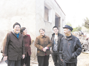 图:站在即将完工的水冲式公厕前,居民们喜笑颜开