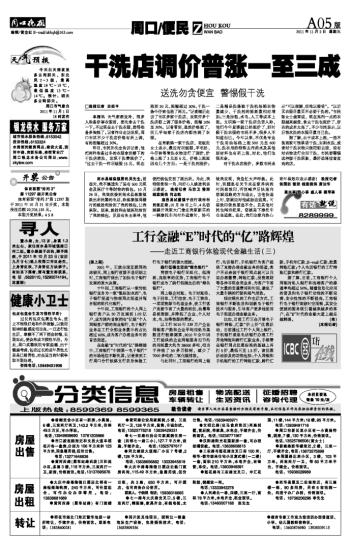 干洗店调价普涨一至三成