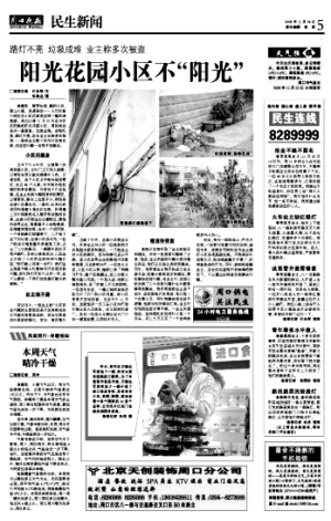 2008年11月24日,本报曾以“阳光花园小区不‘阳光’”为题报道了当时小区管理的混乱情况,当时小区开发商代表曾对业主反映的一些重要问题做了记录,并表示会认真研究解决。
