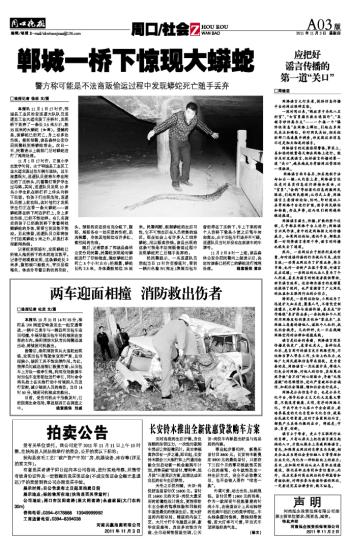 郸城一桥下惊现大蟒蛇
