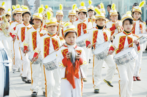 11月9日,周口两所学校的学生穿上崭新漂亮的乐队服装,共同展示潇洒英姿。据介绍,市区多所学校投资建起了学生管乐队,在丰富学生业余文化生活的同时,也带动了学校艺术教育的发展。