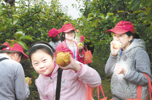 9月18日上午,本报的60名小记者不畏秋雨袭扰,来到黄泛区农场当起了“小果农”,参加摘梨比赛,体验果农的艰辛与快乐,亲身感受种植水果的苦与甜。