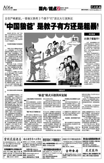 香港商人萧百佑,自称“中国狼爸”,结合国学传统与自身经验,独创一套家教方法,以严格的家规和体罚的高压手段管教孩子,引发各方热议。11月15日晚,记者采访了这位“中国狼爸”。