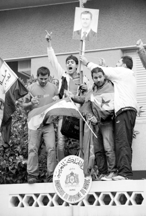 当天阿拉伯国家联盟呼吁叙利亚停止冲突,要求叙利亚总统巴沙尔3天内停止“血腥镇压”。一些巴沙尔的支持者走上街头,抗议阿盟干涉叙利亚事务。