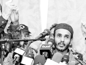 亲手抓获赛义夫的士兵阿加米发布会上高调亮相。