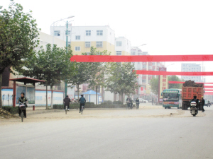 在光荣路北段一处正在施工的工地门口,可以看到几辆运输施工的车辆还在进进出出,一些机动三轮车停靠在工地门口。每当有施工车辆进出,工地门口路边上的尘土就被车辆扬起,过往行人纷纷掩面避让。据附近经商的商户介绍:“前几天下雨,这两天还好一些,往常车辆经过,你站在路的这边都看不到路的那一边,南边还有一处工地比这里还厉害。”