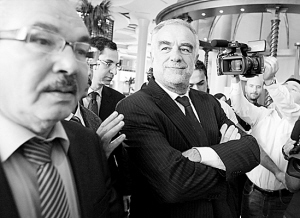 11月22日,在利比亚的黎波里,国际刑事法院检察官奥坎波(中)抵达利比亚。准备与利比亚执政当局就卡扎菲次子赛义夫被捕后的审判展开会谈。此前利当局称,赛义夫将在利比亚接受审判。