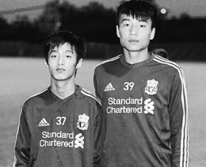 本报综合消息 上个月才满16岁的武汉小球员龙成和14岁的上海小球员陈晓毛(上图),11月22日正式成为英超豪门利物浦俱乐部梯队球员。当天下午,利物浦俱乐部球员发展部总监弗兰克在中国足协青少部表示,两名中国足球少年在利物浦试训期间表现出的“巨大潜力令人惊叹”,他俩因此分别成为利物浦俱乐部U18和U16梯队成员。